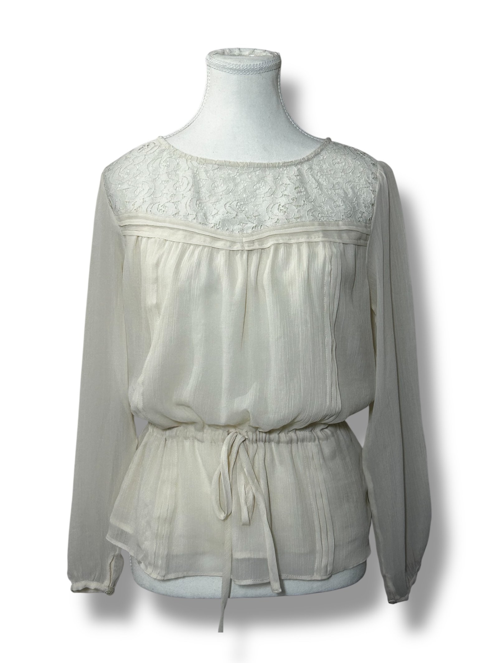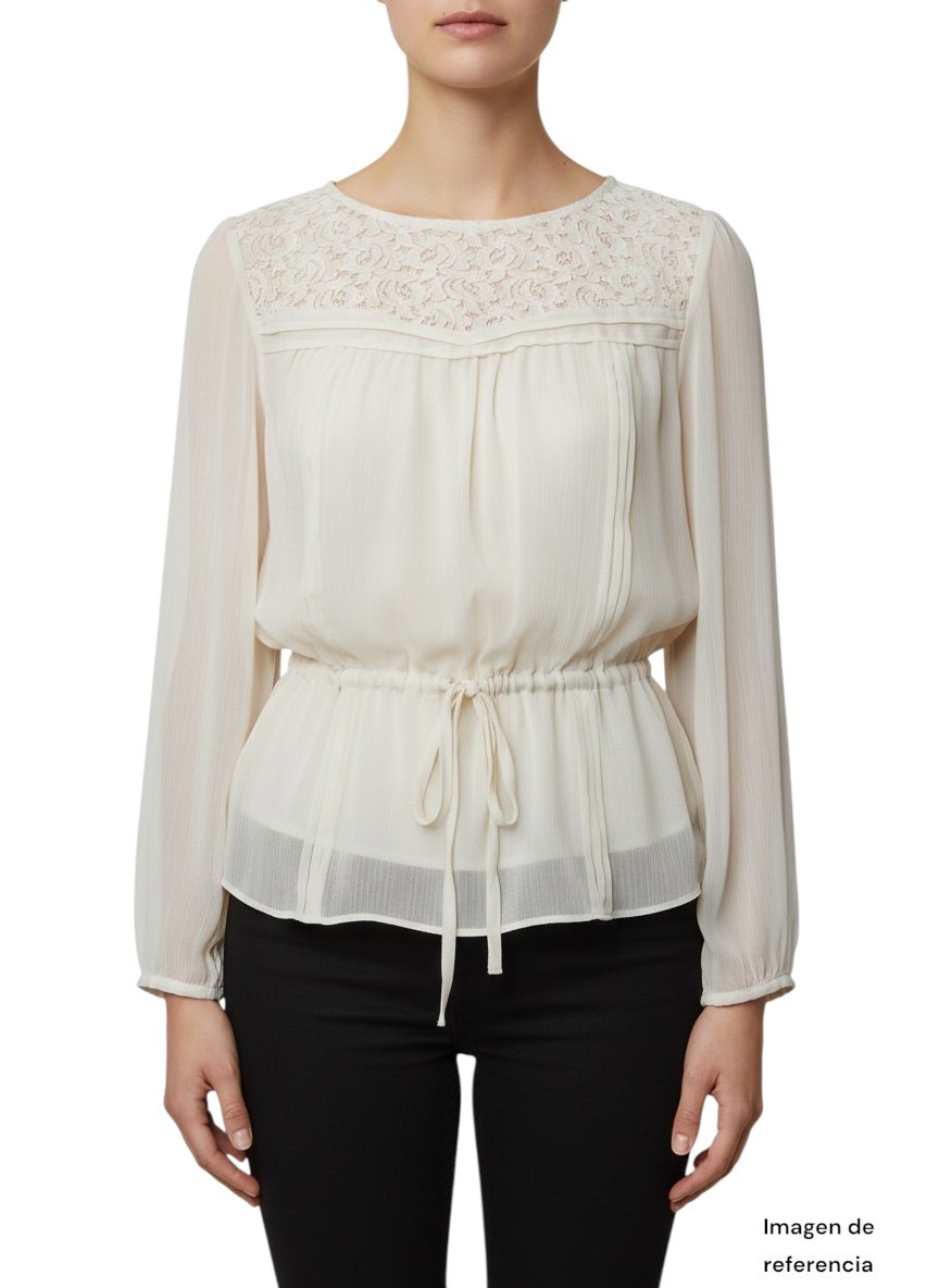 Blusa A Wear talla 10, color crema con detalles de encaje. Elegante, delicada y femenina.