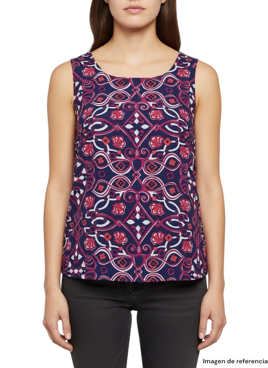 Cuenta con un corte recto y favorecedor, sin mangas, ideal para climas cálidos o para combinar con blazers o chaquetas. En la parte trasera tiene un detalle de abertura con botón, que aporta un toque delicado y femenino.