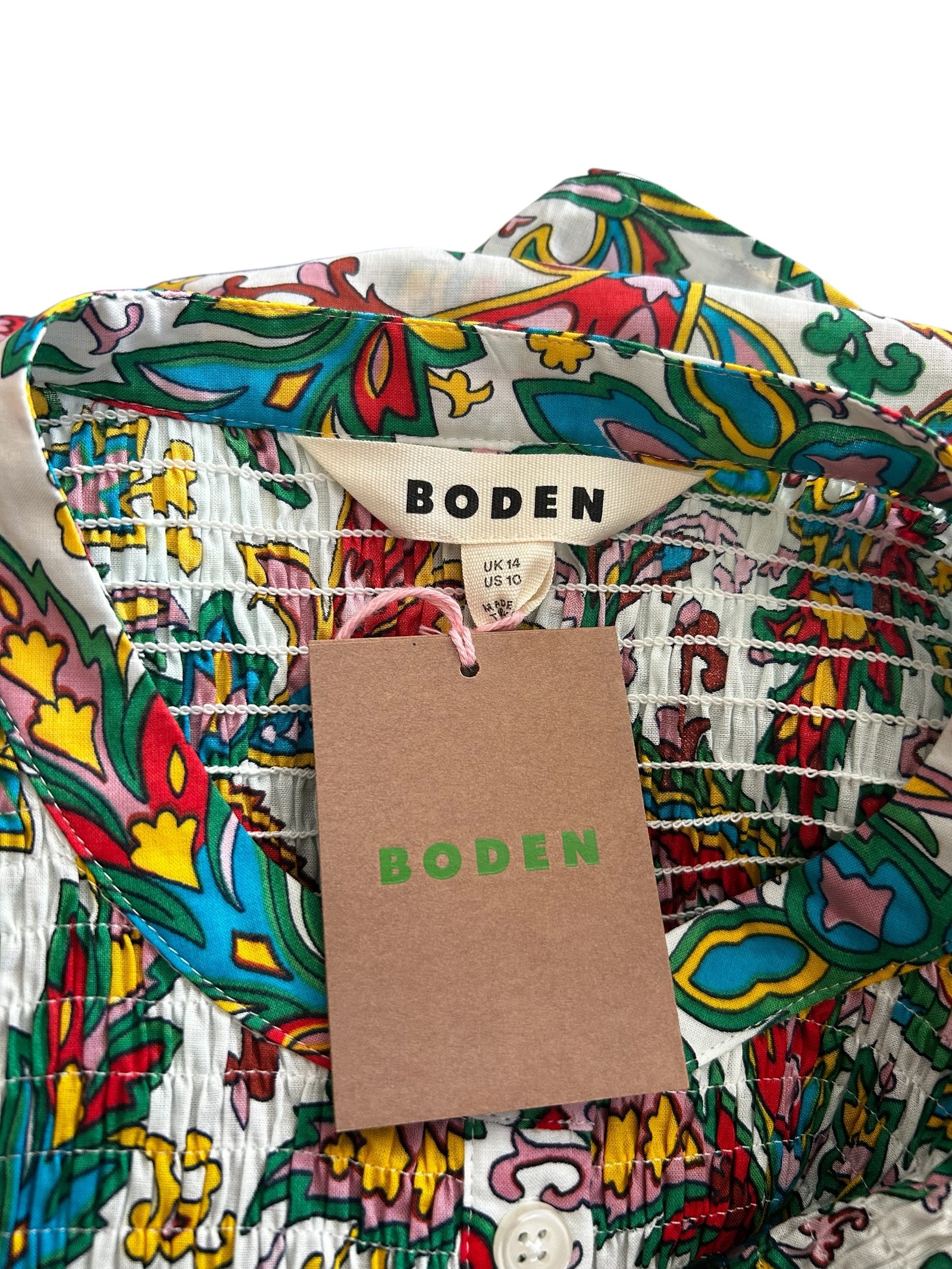 Hermosa blusa de la marca Boden, en talla 10, ideal para quienes aman las prendas con personalidad y estilo único.