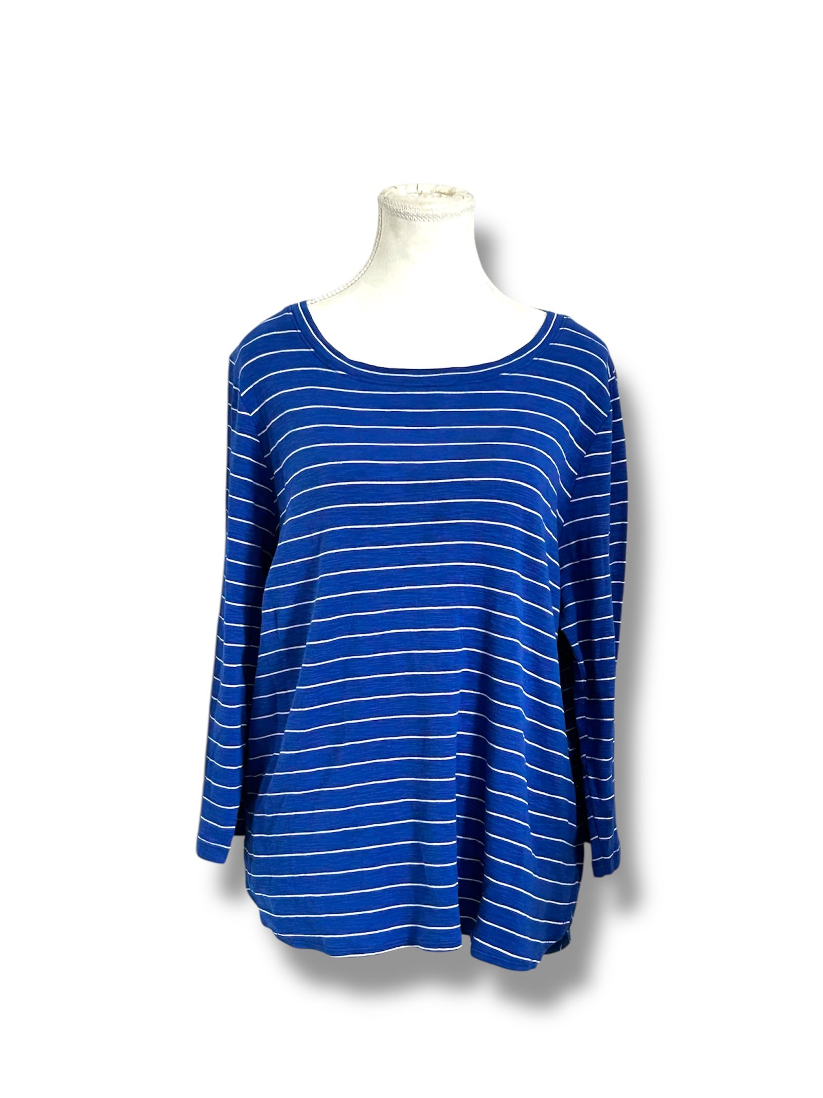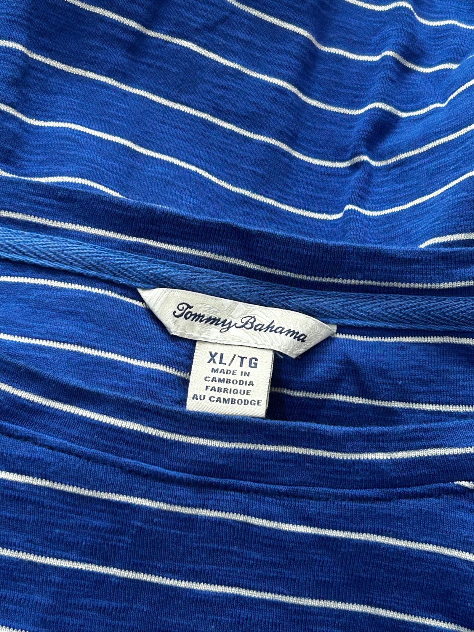 Blusa de manga larga en color azul  Tommy Bahama Talla XL  rayas blancas, corte relajado y cuello redondo. Cómoda y fresca, ideal para un look casual de todos los días.