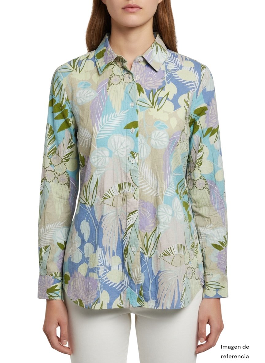 Cuenta con cuello clásico tipo camisa y botones frontales que la hacen versátil y fácil de combinar, perfecta tanto para looks casuales como más formales. Su tela ligera brinda comodidad durante todo el día, ideal para climas cálidos o entretiempo.