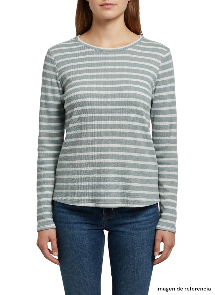 Cuenta con manga larga y cuello redondo, perfecta para climas frescos o para outfits casuales del día a día.