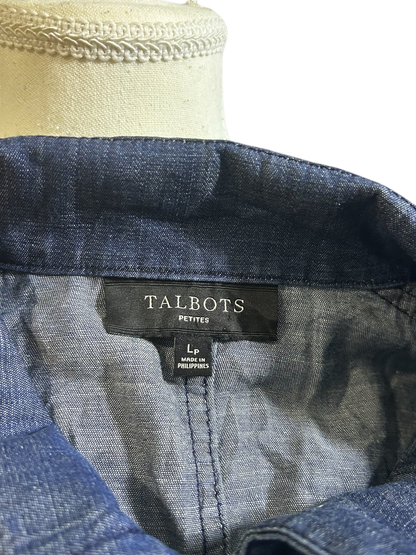 Hermosa y funcional chaqueta de la marca Talbots Petites en talla LP (Large Petite), ideal para un estilo casual elegante y práctico.