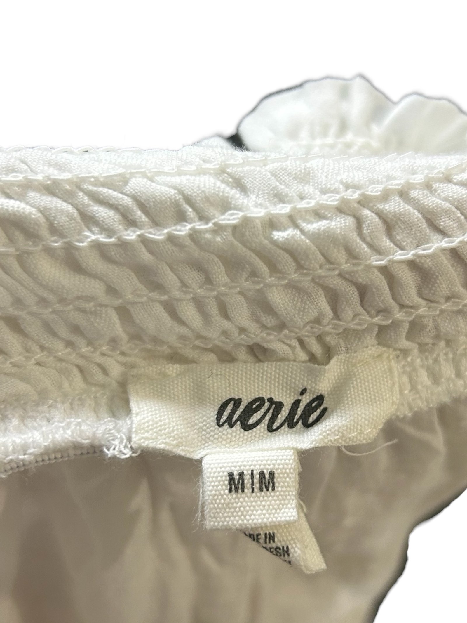 Falda short AERIE talla M en color blanco, con diseño fluido y detalles fruncidos. Fresca, femenina y perfecta para verano.