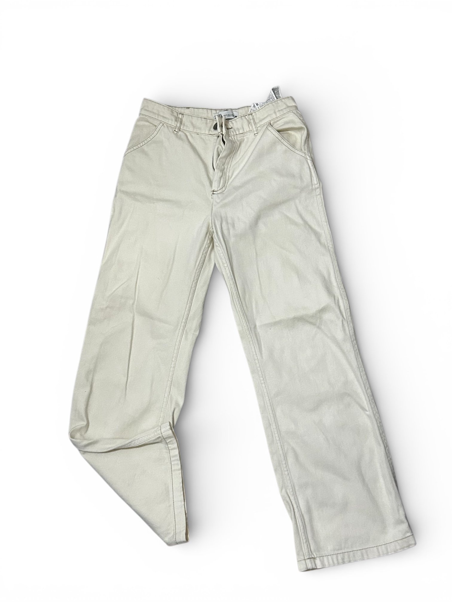 Este elegante pantalón Zara talla 2 es una prenda clásica y versátil que no puede faltar en el guardarropa. Su color beige claro aporta un estilo limpio, sofisticado y fácil de combinar con una gran variedad de prendas y accesorios.