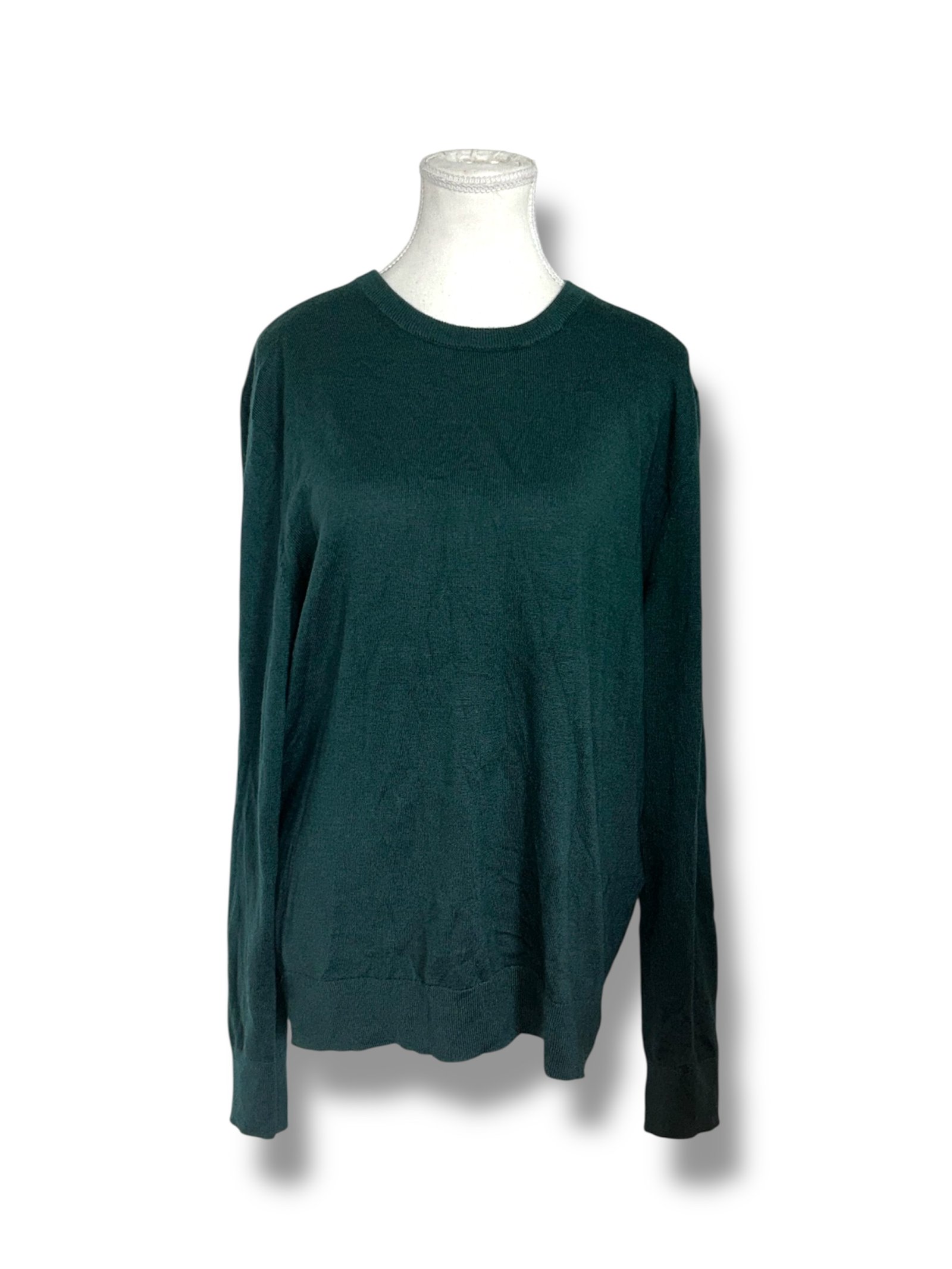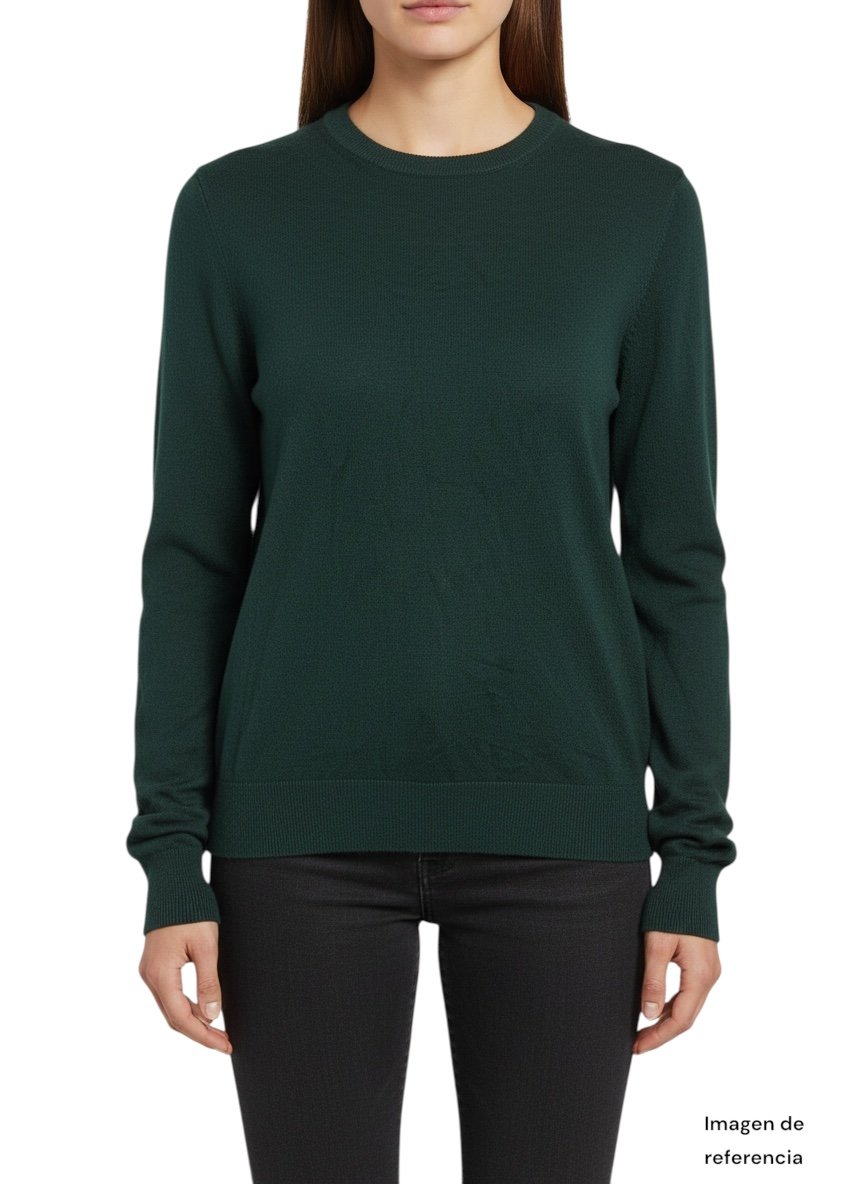 Suéter de punto fino de la reconocida marca Calvin Klein, confeccionado en un elegante y versátil tono verde que lo convierte en una pieza ideal para múltiples ocasiones. Su diseño presenta cuello redondo clásico, mangas largas y un corte relajado que brinda un ajuste cómodo y favorecedor para el uso diario.