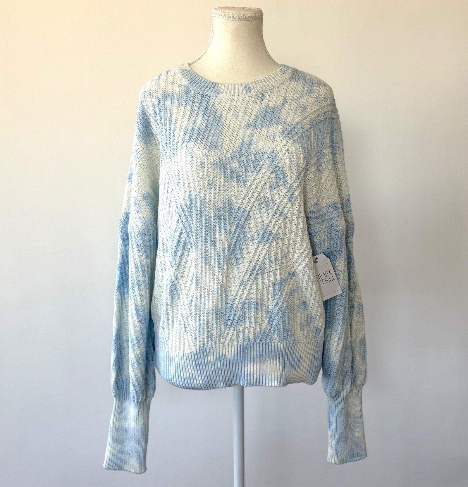 Este suéter Tie Dye de Time & True es una pieza moderna y versátil ideal para elevar cualquier outfit casual. Con un diseño fresco y llamativo, ofrece un estilo relajado sin sacrificar comodidad. La talla M (8-10) se adapta muy bien al cuerpo sin ser ajustada, brindando libertad de movimiento y una caída natural.