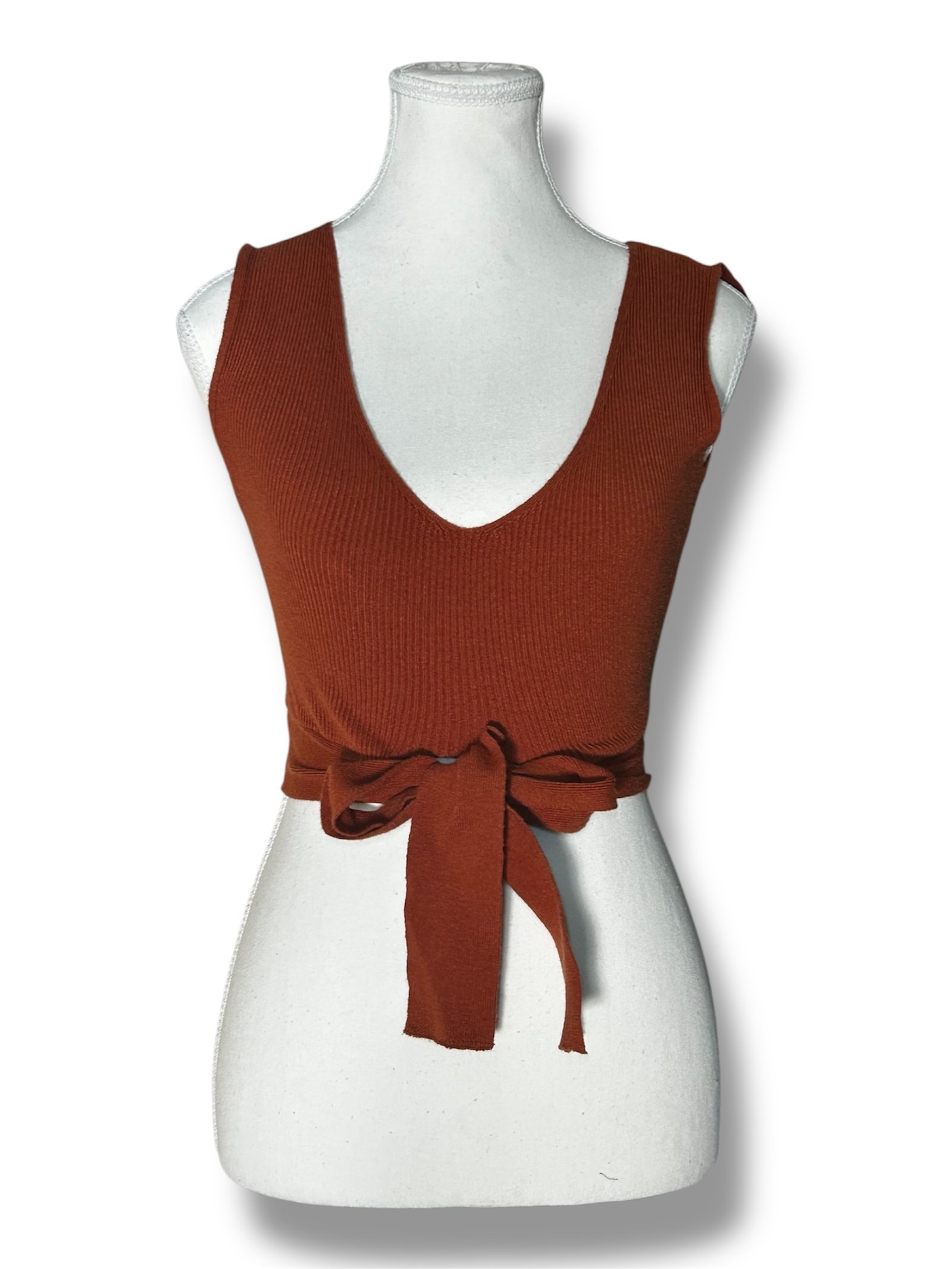 Hermoso top crop en color terracota, una prenda moderna y versátil ideal para looks casuales o más arreglados.