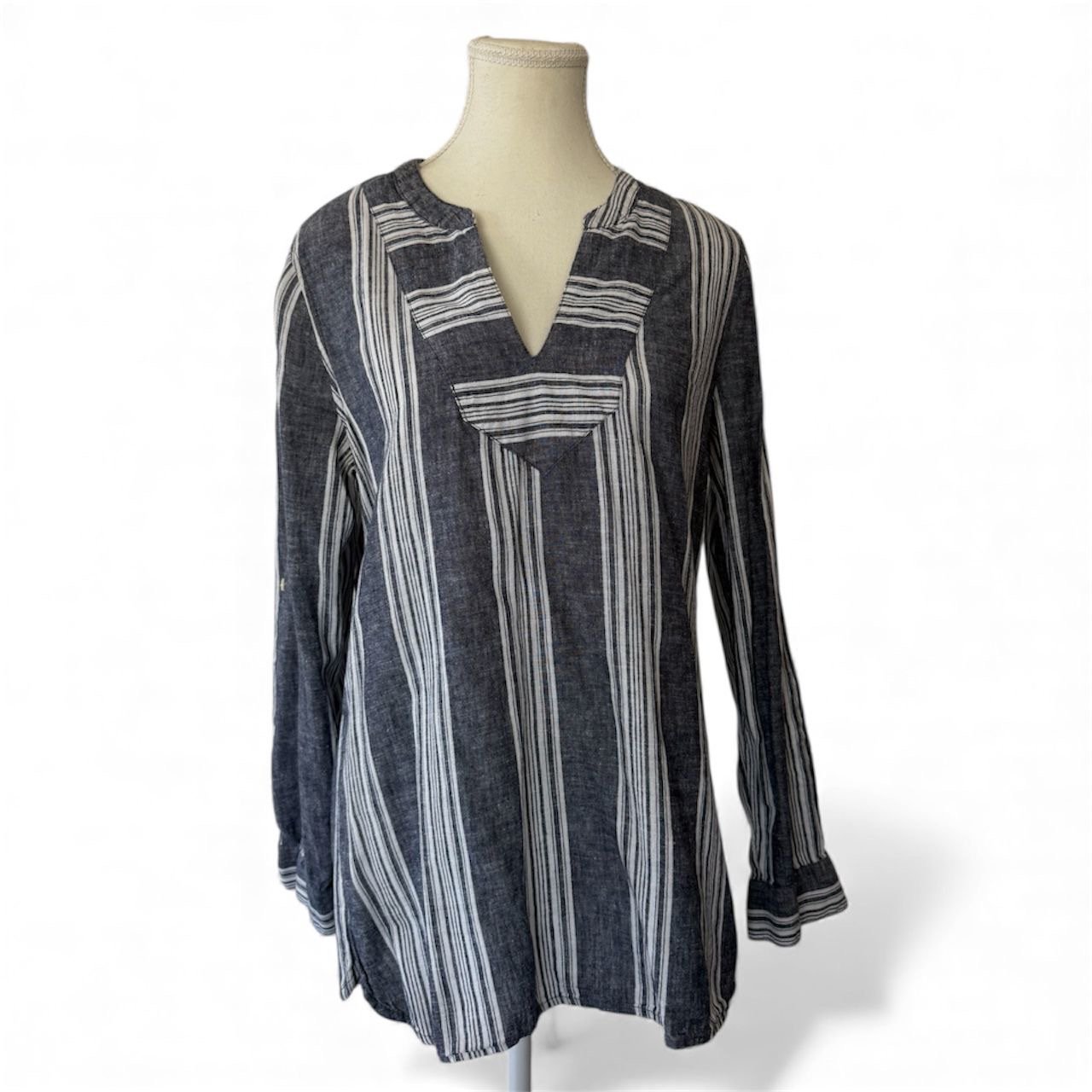 Top estilo túnica de la marca Old Navy en talla S, con un diseño rayado clásico que combina con cualquier outfit del día a día. Su tela es ligera y cómoda, perfecta para usar en climas cálidos o para crear un look casual con jeans, shorts o leggings. La prenda está en condición preloved, cuidadosamente mantenida y en excelente estado, lista para seguir acompañando nuevos estilos. Una pieza versátil, fresca y fácil de llevar para quienes buscan comodidad sin perder el toque moderno.
