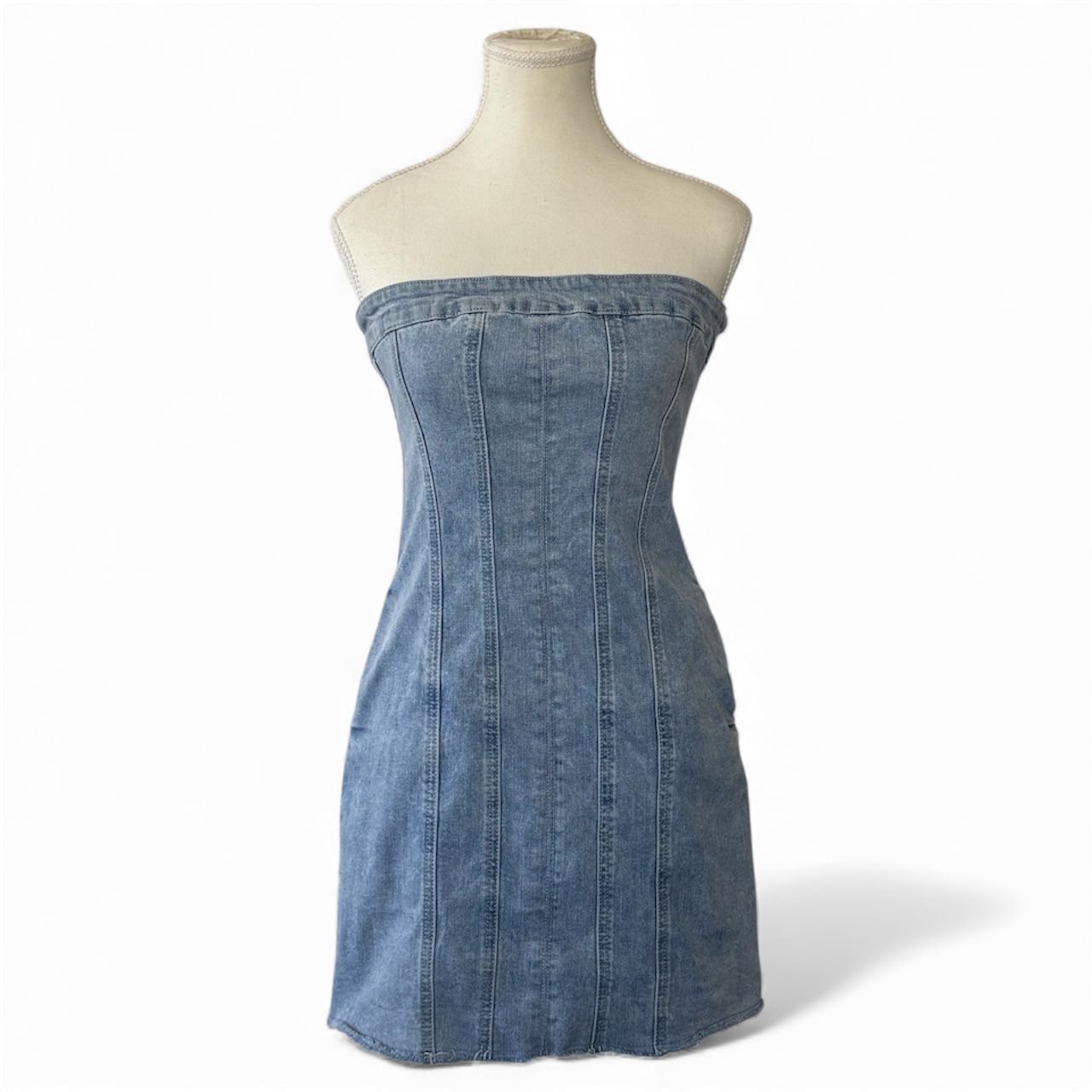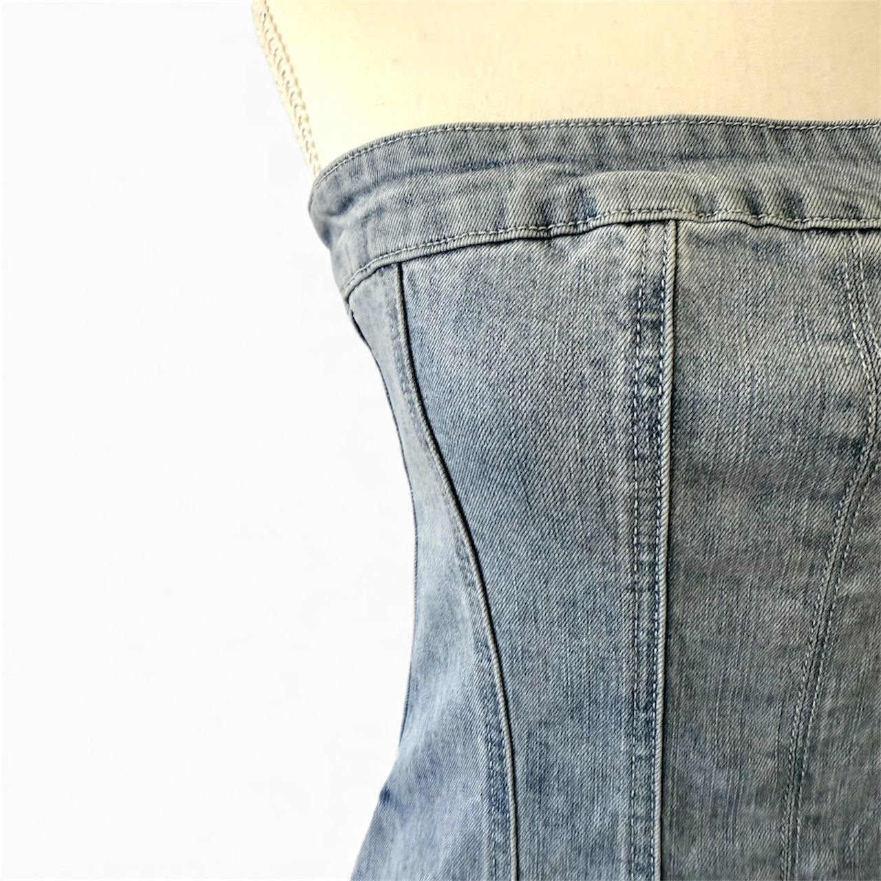 Este vestido denim corto de Miu Mouse en talla S es una pieza versátil, moderna y en excelente estado. Su condición like new garantiza que luce prácticamente como nuevo, sin desgaste visible y conservando la estructura y color original de la tela.
