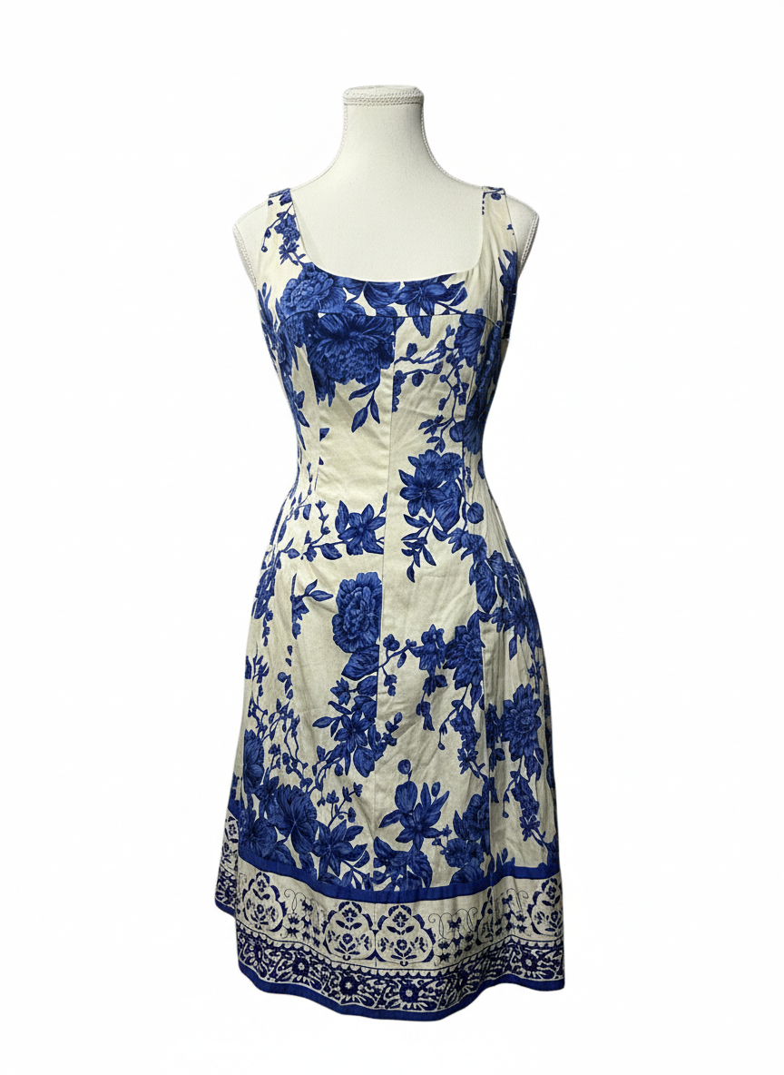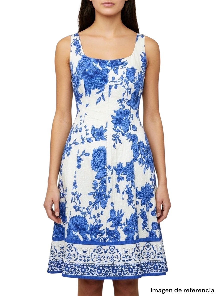 Este hermoso vestido azul y blanco de Jones Wear Dress, talla 8, combina elegancia y frescura en una sola pieza. Su delicado estampado floral en tonos azul intenso sobre fondo blanco aporta un aire clásico y sofisticado, ideal para destacar en cualquier ocasión.